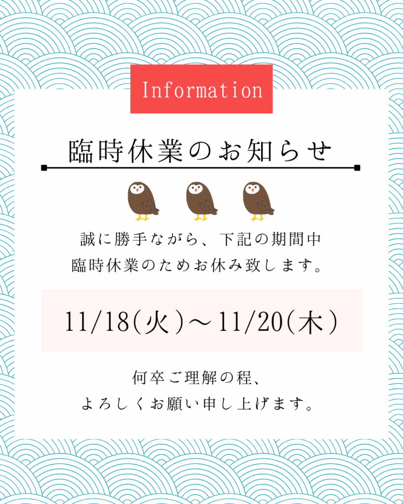 当日のご来店を予定されていたお客様には大変ご迷惑をおかけしますが、予めご了承くださいますようお願い申し上げます。