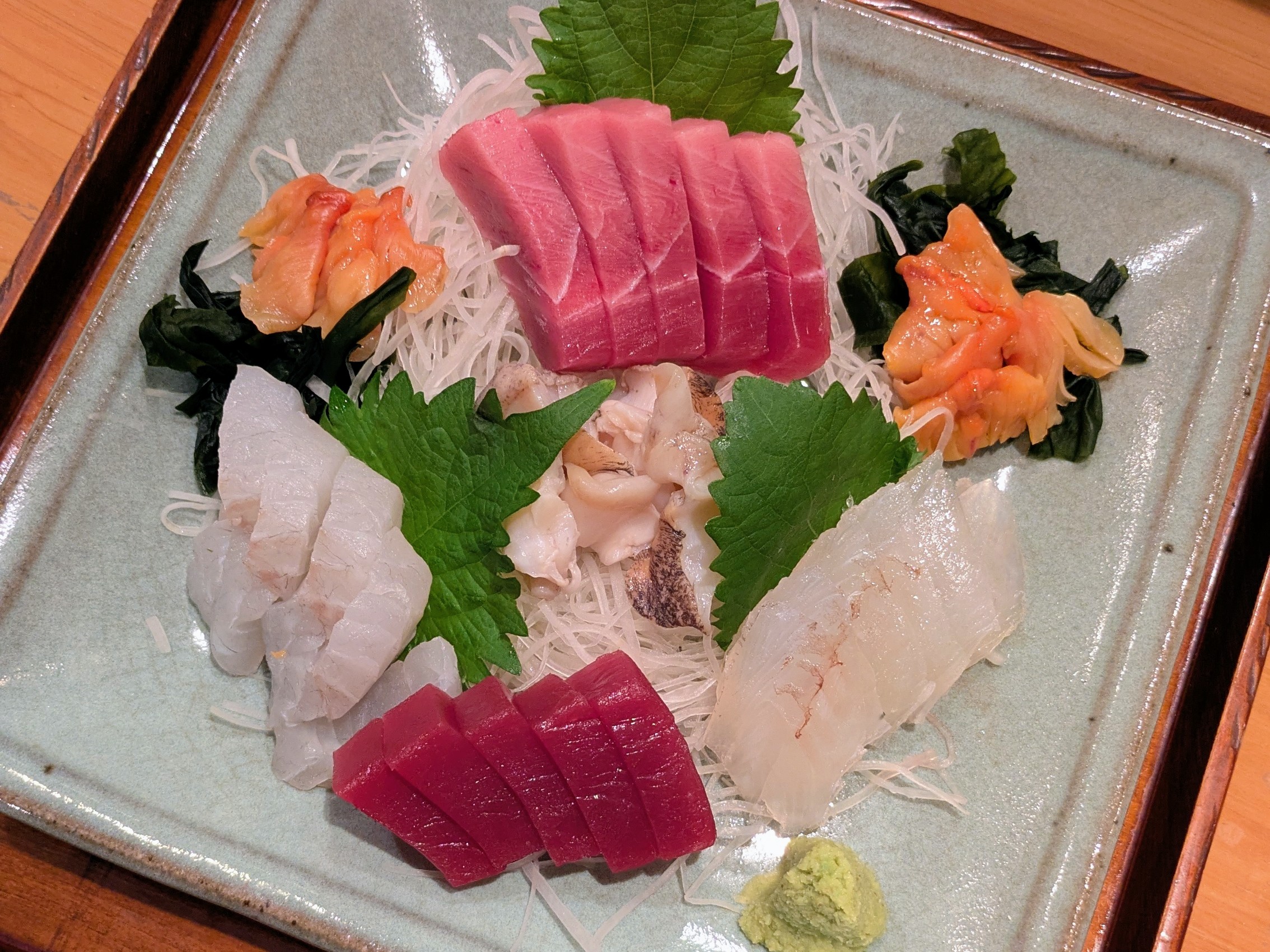 ふくろうの基本形とも言える、季節のネタをバランスよく揃えた一皿。